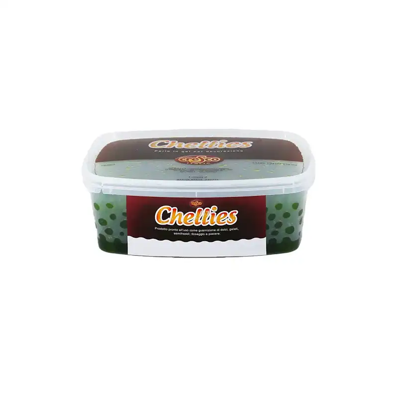 Le Chellies Verdi sono perle in gel dal vivace colore verde brillante e dal fresco sapore di mela verde, perfette per decorare dolci, biscotti, gelati e torte moderne. Con il loro effetto lucido e brillante, donano un aspetto elegante e invitante a ogni creazione, rendendole ideali per amatori e professionisti della pasticceria fatta in casa e artigianale.