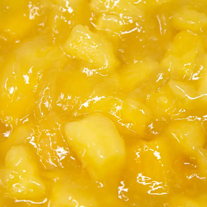 Composta di ananas in pezzi 70%, perfetta per farciture ante e post forno. Resiste a cottura e surgelazione. Confezione 3,6 Kg, pronta all’uso e ricca di frutta.