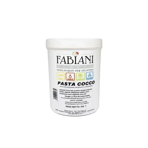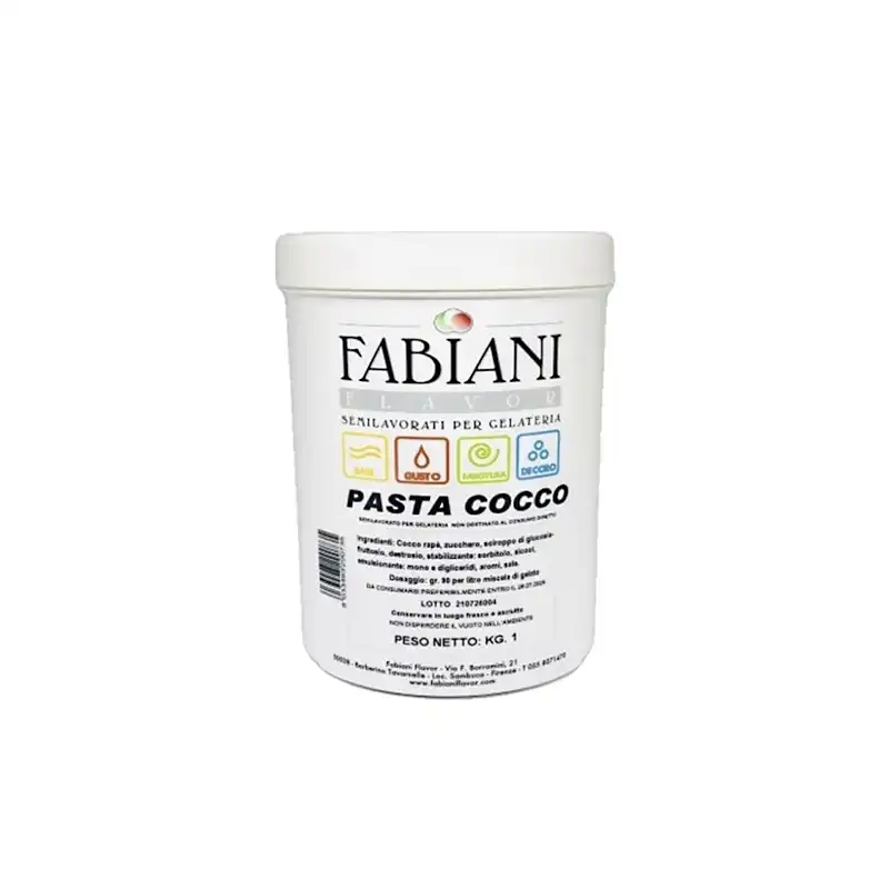 Confezione 1 kgPasta aromatizzante al cocco con il 30% di cocco rapeè. Ideale per gelati artigianali, mousse e dolci tropicali. Gusto autentico e naturale.
