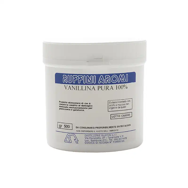 La vanillina in polvere è uno degli ingredienti più utilizzati nella pasticceria casalinga e professionale, grazie alla sua capacità di donare un aroma intenso, dolce e persistente a ogni preparazione. Si presenta come una polvere cristallina di colore variabile dal bianco al bianco avorio, con una purezza elevatissima (99–100%), perfetta per esaltare il gusto di torte, biscotti, creme, budini e molte altre ricette.
